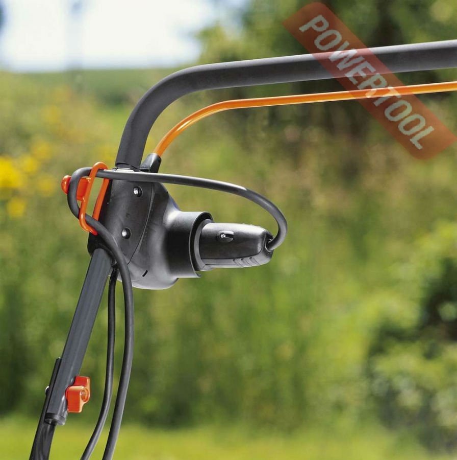 - Большие колеса с профильным рисунком облегчают управление и обеспечивают хорошее сцепление с поверхностью газона.