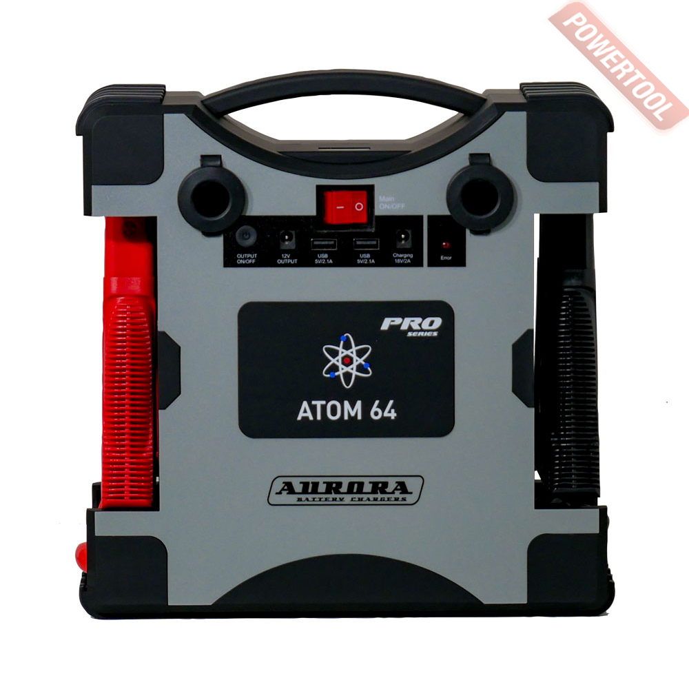 Автономное пусковое устройство AURORA Atom 64 - это самый мощный пускач в линейке LiPo аппаратов AURORA. Джамп-стартер предназначен для запуска двигателей грузовиков, автобусов и прочей техники с напряжением бортовой сети 24В. С помощью АТОМ 64 можно заряжать и питать мобильные телефоны, ноутбуки, планшеты, навигаторы и прочую мобильную технику. Особенности конструкции аппарата позволяют, в отличие от предыдущих поколений устройств, использовать всю доступную ёмкость батарей для зарядки электроники. Мощный LED-фонарь поможет осветить место работы в течение нескольких суток. Режим мигания фонаря "SOS" поможет подать сигнал бедствия или предупредит других участников движения в случае неисправности фар.