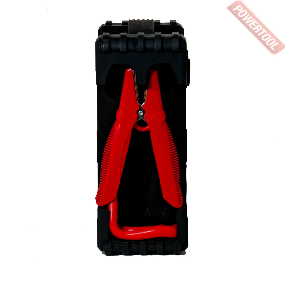 Автономное пусковое устройство для автомобилей с 24 В аккумулятором, пиковый пусковой ток 3000 А, рабочий пусковой ток 1500 А, внутренний LiPo аккумулятор емкостью 64 Ач, время зарядки 8 ч, напражение сети 220 В, дисплей, функция Power Bank, два USB-выхода 5В/2А, 5В/1А, порт 12В для питания раций или навигатров, два разъём прикуривателя DC, разъем зарядки встроенной батареи 18 В/2А, LED фонарь, размеры 278x274x110 мм, вес 5 кг, сетевой адаптер, автомобильный адаптер, USB кабель 3в1, силовые кабели, ремень-фиксатор, кейс.