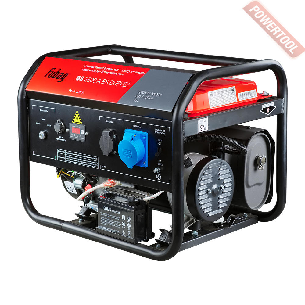 Бензиновый генератор FUBAG BS 3500 A ES Duplex - компактные габариты, легкий вес и низкий расход топлива в совокупности со способностью работать с оборудованием с кратковременной пусковой мощностью до 7,0 кВА являются основными преимуществами и делают его незаменимым помощником для работы с электроинструментами, вентиляторным, насосным и другими высоконагруженными потребителями, при этом позволяет значительно сэкономить средства на покупке более мощной модели.
