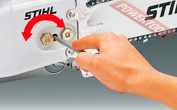 - Боковое устройство натяжения цепи. Доступ к натяжному винту обеспечивается сбоку через крышку цепной звёздочки. Это предотвращает контакт рук с острой цепью и кончиками зубчатого упора