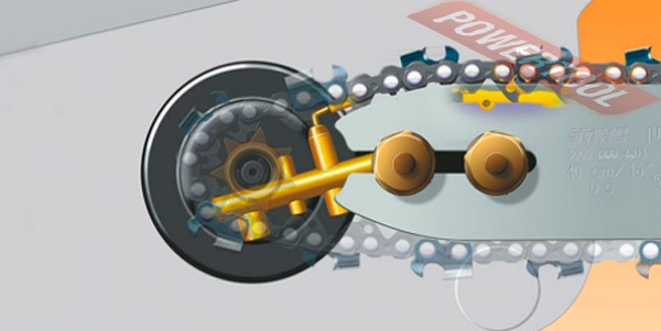 • Система смазки цепи Ematic. Система STIHL Ematic состоит из направляющей шины Ematic, пильной цепи Oilomatic и масляного насоса с регулируемой подачей. Особая конструкция шины и цепи заставляет каждую каплю масла попасть именно туда, где оно требуется для смазывания. Это позволяет сократить расход масла на 50 %