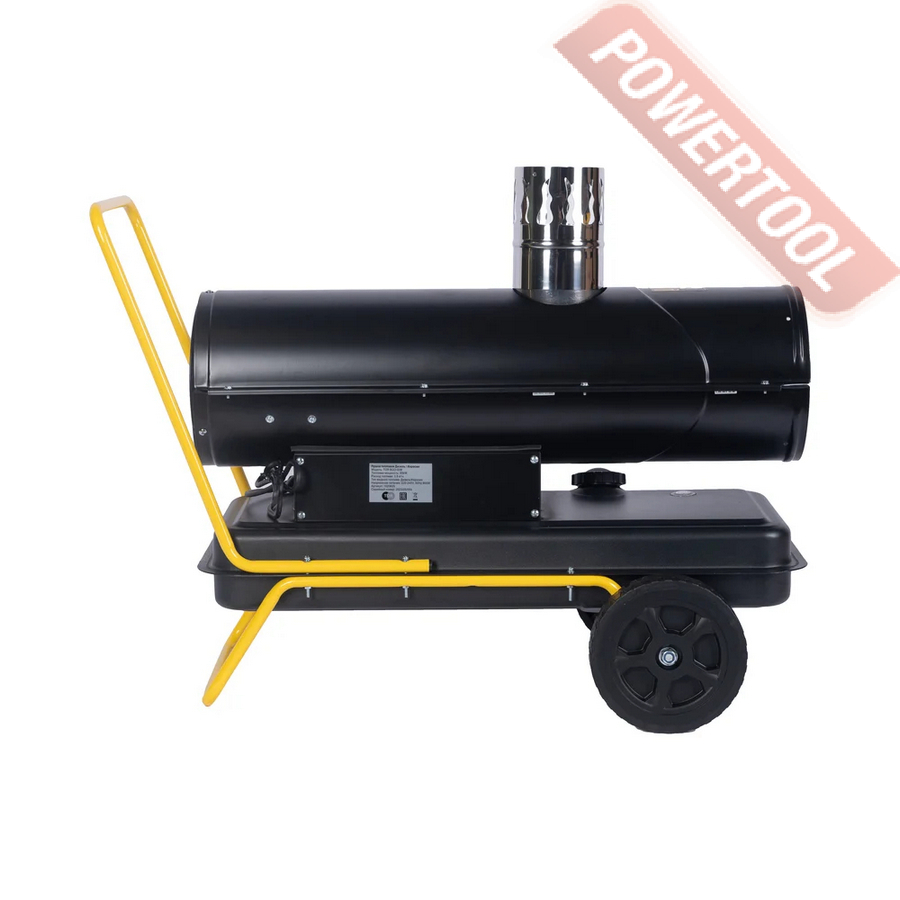 Дизельная тепловая пушка непрямого нагрева, напряжение сети 220 В, тепловая мощность 50 кВт, расход воздуха 2000 куб.м/ч, расход топлива 3,8 кг/ч, объем топливного бака 69 л, потребляемая мощность 900 Вт, встроенный термостат, контроль пламени, датчик перегрева, датчик уровня топлива, дымоход, самодиагностика, время автономной работы до 18 ч, габариты ДхШхВ 1370х560х995 мм, вес 59 кг, тележечный комплект.