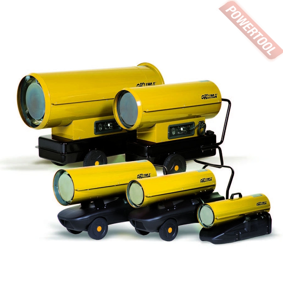 Дизельная тепловая пушка прямого нагрева OKLIMA Biemmedue SD 130 может применяться на открытых или хорошо проветриваемых объектах, например, на строительных площадках, заводах, в складских помещениях. Предназначена для высокопроизводительного обогрева нежилых помещений, прогрева бетона или грунта при строительных и ремонтных работах. За короткое время может, обеспечить теплом большое пространство. Открытая камера сгорания выбрасывает вредные продукты вместе с горячим воздухом, поэтому применять в закрытых помещениях с людьми её нельзя. Перемещение и ввод в эксплуатацию не требует особых усилий и знаний. Запуск осуществляется нажатием одной кнопки, после продува системы происходит поджиг и дизельное топливо начинает равномерно сгорать в камере, а вентилятор создает воздушный поток и выдувает теплые массы в окружающее пространство. Уже на первой минуте работы жидкотопливного нагревателя, ощущается высокий КПД системы. Установка этой машины должна происходить в помещениях с возможностью проветривания, давая тем самым выход продуктам сгорания. Так как в технологии изготовления применен процесс прямого нагрева, то вместе с прогретым воздухом из сопла выходят элементы горения. Если нагнетательное давление сбалансировано и форсунка настроена правильно, то выхлопов минимальное количество, копать и темный дым отсутствуют.