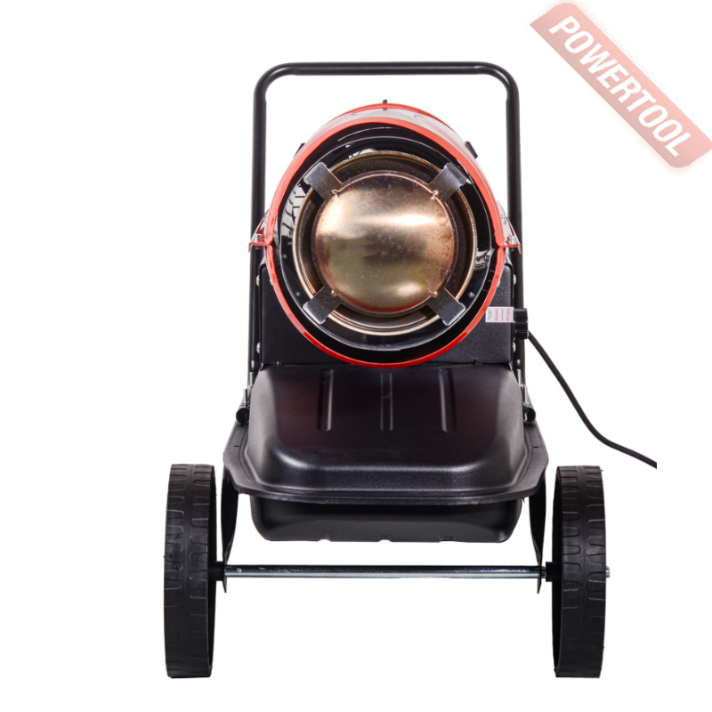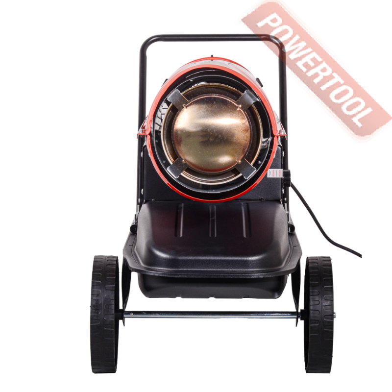 • Транспортировка. По своим характеристикам имеет компактные габариты и вес, что делает ее эргономичной и удобной для перевозки. Колеса и удобная рукоятка позволяют с легкостью перемещать тепловую пушку по объекту.