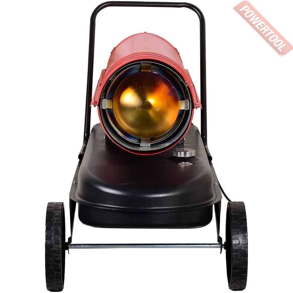 Корпус модели выполнен из антикоррозийного материала и обладает повышенной теплоизоляцией. Благодаря термостату вы можете регулировать степень нагрева и нужную температуру. Тепловую пушку легко перемещать по помещению при помощи колес.