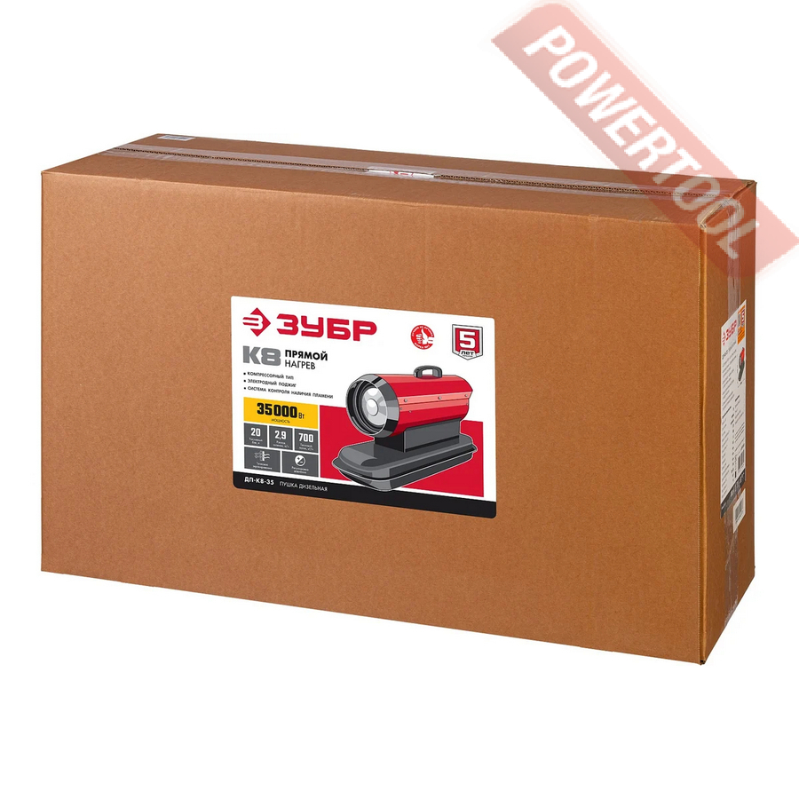 - 1. Дизельная тепловая пушка прямого нагрева ЗУБР ДП-К8-35.