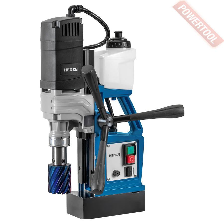 Руслан:Приобрели данную модель для ремонтных работ. Отличная мощность двигателя, высокая производительность, обеспечиваемая трехступенчатым редуктором и электронным блоком управления. Мощная электромагнитная стойка гарантирует устойчивость, безопасность, надежное крепление на металлической поверхности. Данной дрелью можно сверлить с помощью кольцевых фрез отверстия в стальных изделиях диаметром до 42 мм, сверлить металл толщиной до 50 мм. Надежный, профессиональный инструмент для ценителей качества и удобства в работе.