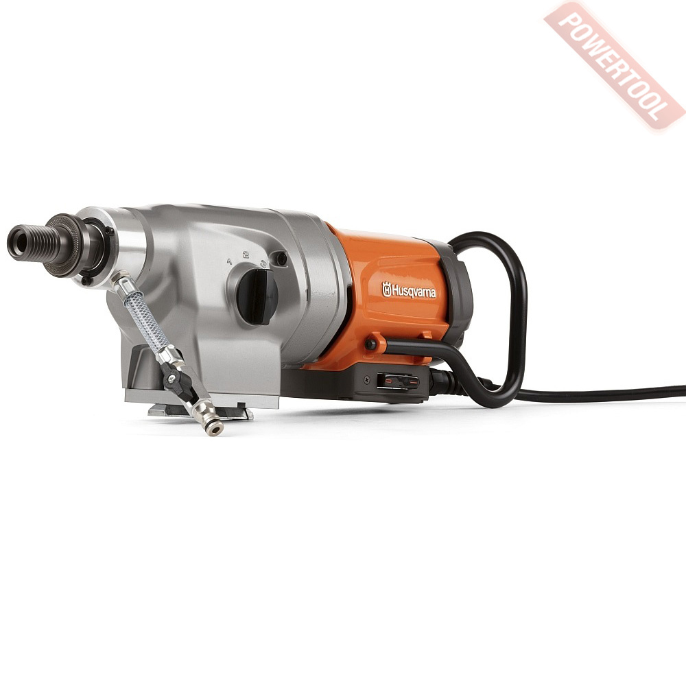 Установка алмазного бурения, 3200 Вт, электрический двигатель 220 В, 3 скорости, 250/510/800 об/мин, диаметр коронки 100-450 мм, резьба шпинделя 1 1/4 дюйма, защита от перегрузки, плавный пуск, габариты 586х138 мм, вес 14,2 кг. Для работы подойдут стойки DS 500, DS 900, DS 50 GYRO.