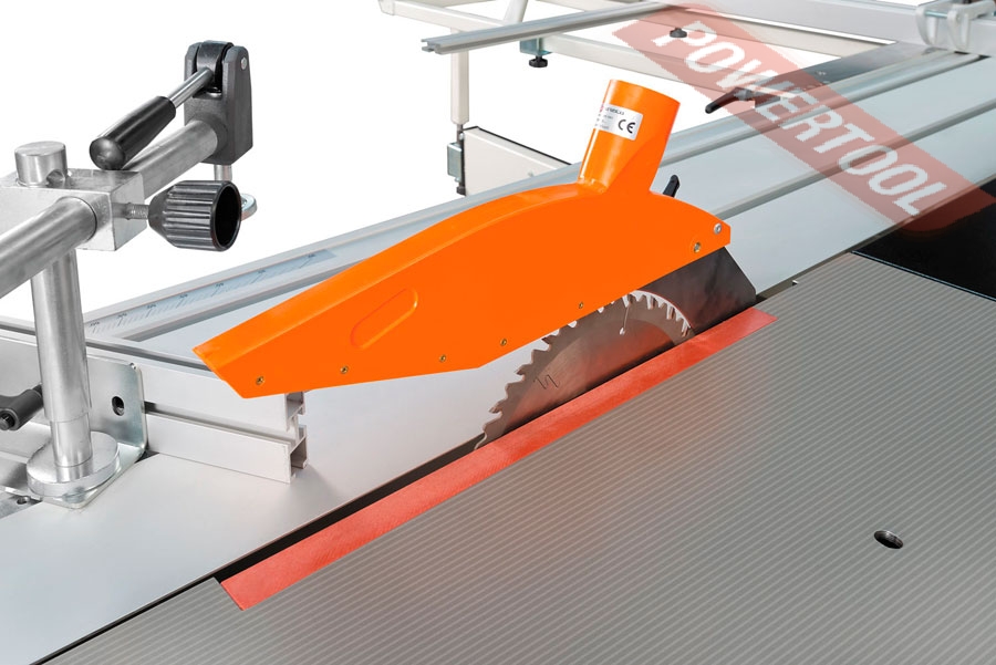 Базовая комплектация включает в себя каретку с расширением и телескопической опорой для распиловки больших форматов. Каретка оборудована раздвижным упором заготовки и эксцентриковым прижимом.Подвижный стол (каретка) длиной 3200 мм перемещается по шариковым направляющим запатентованной конструкции, которая позволяет сочетать лёгкий и точный ход с высокой износостойкостью и простотой обслуживания. В отличие от многих аналогичных, узел является легкоразборным, что существенно упрощает его обслуживание.