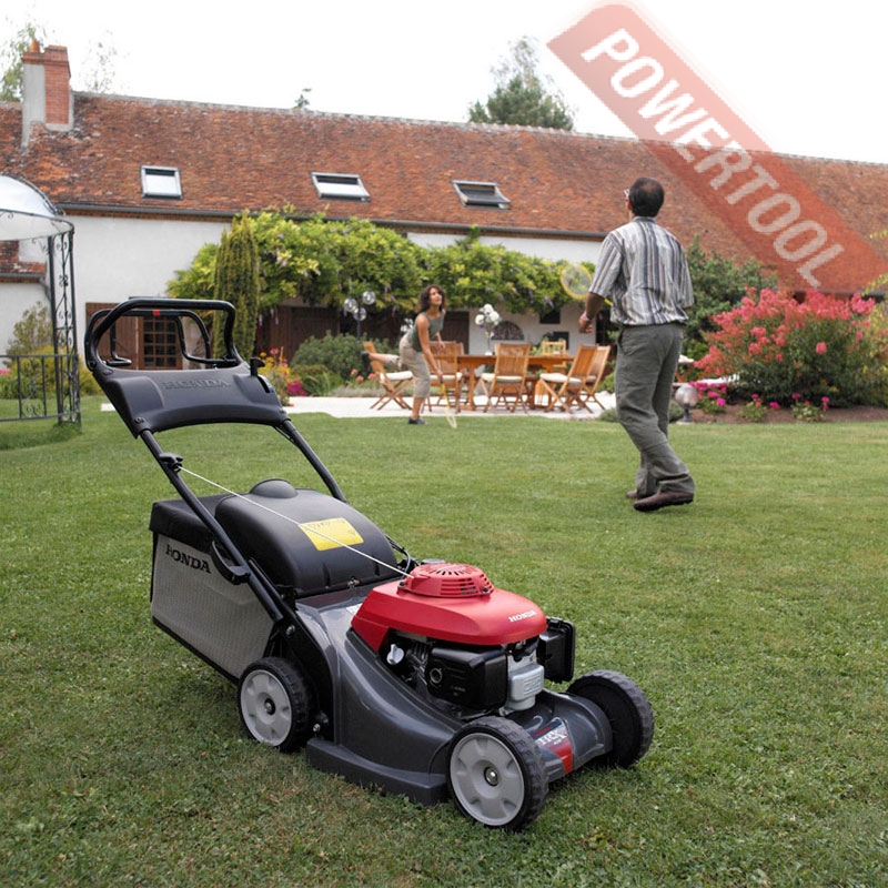 Газонокосилка бензиновая самоходная, корпус Honda Polystrong, задний привод, двигатель HONDA GCV160 мощностью 5,5 л.с. и объемом 160 куб.см., скорость 3,5 км/ч, автоматическая воздушная заслонка, ручной запуск ручной шнуром, ширина скашивания 42 см, центральная регулировка высоты скашивания в 6 положениях от 21 до 73 мм, подшипники качения, скос травы в мягкий травосборник с жестким верхом объемом 60 л и мульчирование (опция), тип топлива БЕНЗИН АИ-92, бак 0,93 л, расход топлива 1,69 л/ч, вес 33 кг.