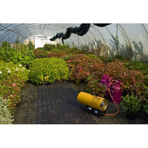Газовая тепловая пушка MASTER BLP 53 E - переносной обогреватель воздуха, работающий на газе, он быстро и эффективно обогревает большие площади. Это оборудование не требует больших затрат и капиталовложений. Газовые нагреватели воздуха широко применяются в помещениях с хорошей вентиляцией: на строительных площадках, заводах и в складских помещениях. Характерные особенности это полное использование топлива, а также обмен тепла благодаря непосредственному смешиванию входящего воздуха с продуктами сгорания. Что касается топлива, то для этих целей подходит баллон с пропаном или бутаном. Соответствующий шланг присоединяется через редуктор к вентилю баллона. Необходимо соблюдать все правила работы с газовыми баллонами. Также необходимо помнить, что процесс горения активно поглощает кислород, который жизненно необходим человеку. Поэтому помещения, где устанавливаются тепловые пушки, должны постоянно проветриваться и иметь хорошую вентиляцию. Для правильной работы обогреватель требует соответствующего количества свежего воздуха. Поэтому он предназначен для использования вне помещений или в помещениях с хорошей вентиляцией, где обеспечено соответствующее количество воздуха. Соответствующую вентиляцию можно обеспечить, приспосабливая обогревательную мощность прибора к площади помещения в соответствии со следующей пропорцией: 1 куб.м на каждые 100 Вт мощности. Ни в коем случае не рекомендуется, чтобы помещение было меньше, чем 100 куб.м. Соответствующий обмен воздуха может быть обеспечен благодаря вентиляционному отверстию, соответствующему следующим требованиям: величина 25 кв.см на 1 кВт обогревательной (минимум 250 кв.см) мощности, размещение точно между верхней и нижней частью помещения.