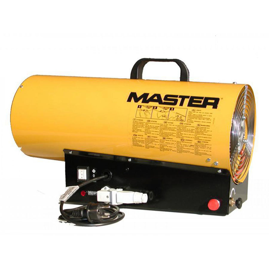 Газовая тепловая пушка MASTER BLP 73 E - переносной обогреватель воздуха, работающий на газе, он быстро и эффективно обогревает большие площади. Это оборудование не требует больших затрат и капиталовложений. Газовые нагреватели воздуха широко применяются в помещениях с хорошей вентиляцией: на строительных площадках, заводах и в складских помещениях. Характерные особенности это полное использование топлива, а также обмен тепла благодаря непосредственному смешиванию входящего воздуха с продуктами сгорания. Что касается топлива, то для этих целей подходит баллон с пропаном или бутаном. Соответствующий шланг присоединяется через редуктор к вентилю баллона. Необходимо соблюдать все правила работы с газовыми баллонами. Также необходимо помнить, что процесс горения активно поглощает кислород, который жизненно необходим человеку. Поэтому помещения, где устанавливаются тепловые пушки, должны постоянно проветриваться и иметь хорошую вентиляцию. Для правильной работы обогреватель требует соответствующего количества свежего воздуха. Поэтому он предназначен для использования вне помещений или в помещениях с хорошей вентиляцией, где обеспечено соответствующее количество воздуха. Соответствующую вентиляцию можно обеспечить, приспосабливая обогревательную мощность прибора к площади помещения в соответствии со следующей пропорцией: 1 куб.м на каждые 100 Вт мощности. Ни в коем случае не рекомендуется, чтобы помещение было меньше, чем 100 куб.м. Соответствующий обмен воздуха может быть обеспечен благодаря вентиляционному отверстию, соответствующему следующим требованиям: величина 25 кв.см на 1 кВт обогревательной (минимум 250 кв.см) мощности, размещение точно между верхней и нижней частью помещения.