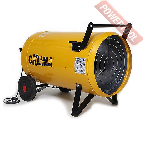 Газовая тепловая пушка OKLIMA Biemmedue SG 420 M - переносной обогреватель воздуха, работающий на газе, он быстро и эффективно обогревает большие площади. Это оборудование не требует больших затрат и капиталовложений. Газовые нагреватели воздуха широко применяются в помещениях с хорошей вентиляцией: на строительных площадках, заводах и в складских помещениях. Характерные особенности это полное использование топлива, а также обмен тепла благодаря непосредственному смешиванию входящего воздуха с продуктами сгорания. Что касается топлива, то для этих целей подходит баллон с пропаном или бутаном. Соответствующий шланг присоединяется через редуктор к вентилю баллона. Необходимо соблюдать все правила работы с газовыми баллонами. Также необходимо помнить, что процесс горения активно поглощает кислород, который жизненно необходим человеку. Поэтому помещения, где устанавливаются тепловые пушки, должны постоянно проветриваться и иметь хорошую вентиляцию. Для правильной работы обогреватель требует соответствующего количества свежего воздуха. Поэтому он предназначен для использования вне помещений или в помещениях с хорошей вентиляцией, где обеспечено соответствующее количество воздуха. Соответствующую вентиляцию можно обеспечить, приспосабливая обогревательную мощность прибора к площади помещения в соответствии со следующей пропорцией: 1 куб.м на каждые 100 Вт мощности. Ни в коем случае не рекомендуется, чтобы помещение было меньше, чем 100 куб.м. Соответствующий обмен воздуха может быть обеспечен благодаря вентиляционному отверстию, соответствующему следующим требованиям: величина 25 кв.см на 1 кВт обогревательной (минимум 250 кв.см) мощности, размещение точно между верхней и нижней частью помещения.