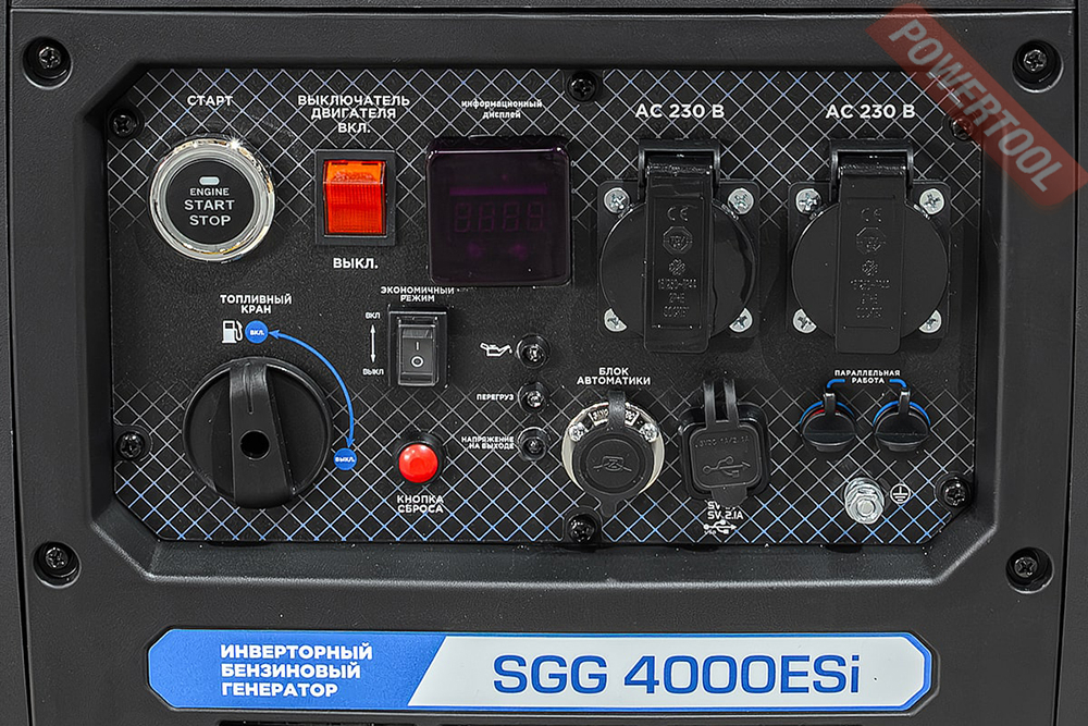 • Индикаторы на панели показывают параметры напряжения, превышение мощности генератора, низкий уровень масла.