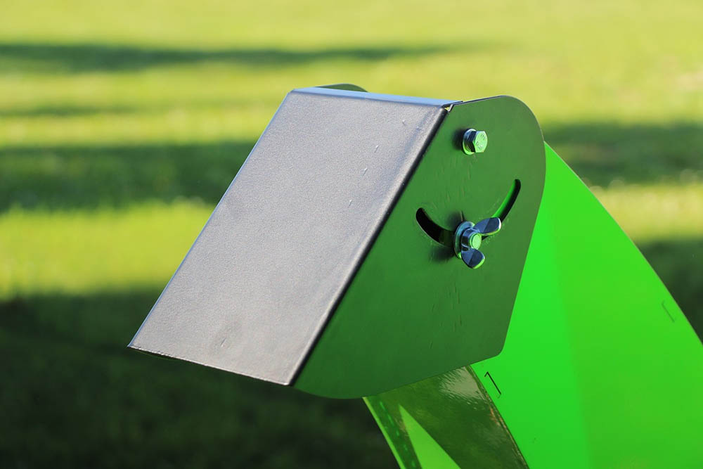 - Оснащен одним ножом и одним противорежущим сегментом. Замена и контроль ножей возможны после несложного откидывания загрузочного бункера.