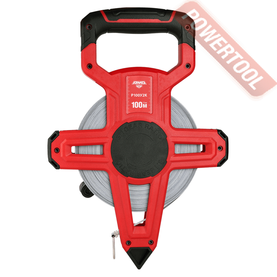 Для быстрого сматывания стальной ленты рулетка AMO Р100У2К оборудована редукторным механизмом с ручным приводом. Это позволяет сэкономить время и силы при работе, что особенно важно на больших строительных объектах.