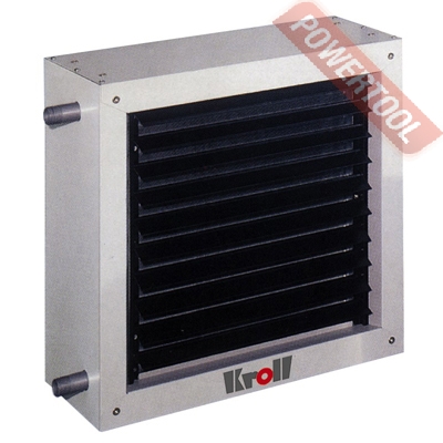 Калорифер водяной для подключения к системе центрального отопления, настенное крепление, две скорости, мах тепловая мощность 44,10 кВт при 90/70 градусов Твх=-15 градусов на 2-й скорости, мах температура на выходе 50,26 градусов при 90/70 градусов Твх=20 градусов на 1-й скорости, расход воздуха 3050 куб.м/ч, потребление электричества 230 В, 0,14 кВт, диаметр трубы 1 дюйм, бесшумный вентилятор 59 дБ, степень защиты IP55, габариты (ДхШхВ) 630х500х630 мм, вес 32 кг.