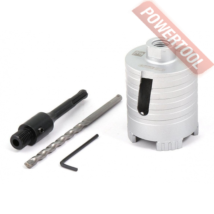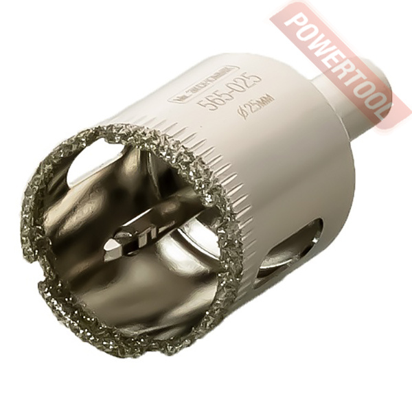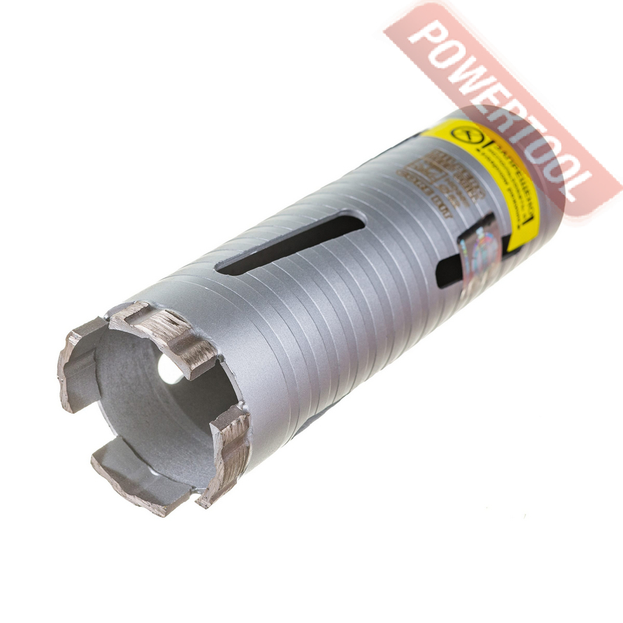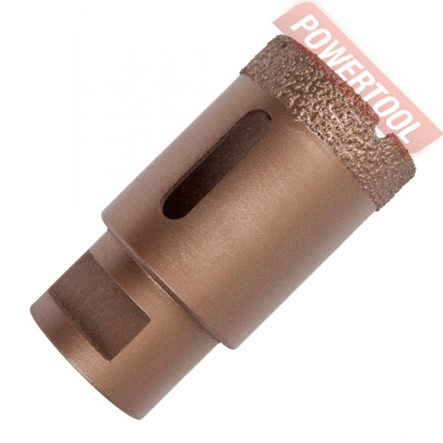 Коронка алмазная универсальная кольцевая для УШМ, диаметр 83 мм, глубина сверления 35 мм, тип хвостовика M14, вакуумное спекание сегмента, сухое сверление, предназначена для сверления отверстий в керамограните, камне, керамике, бетоне, кирпиче, ограниченно листового металла, дерева и комбинаций всех этих материалов.