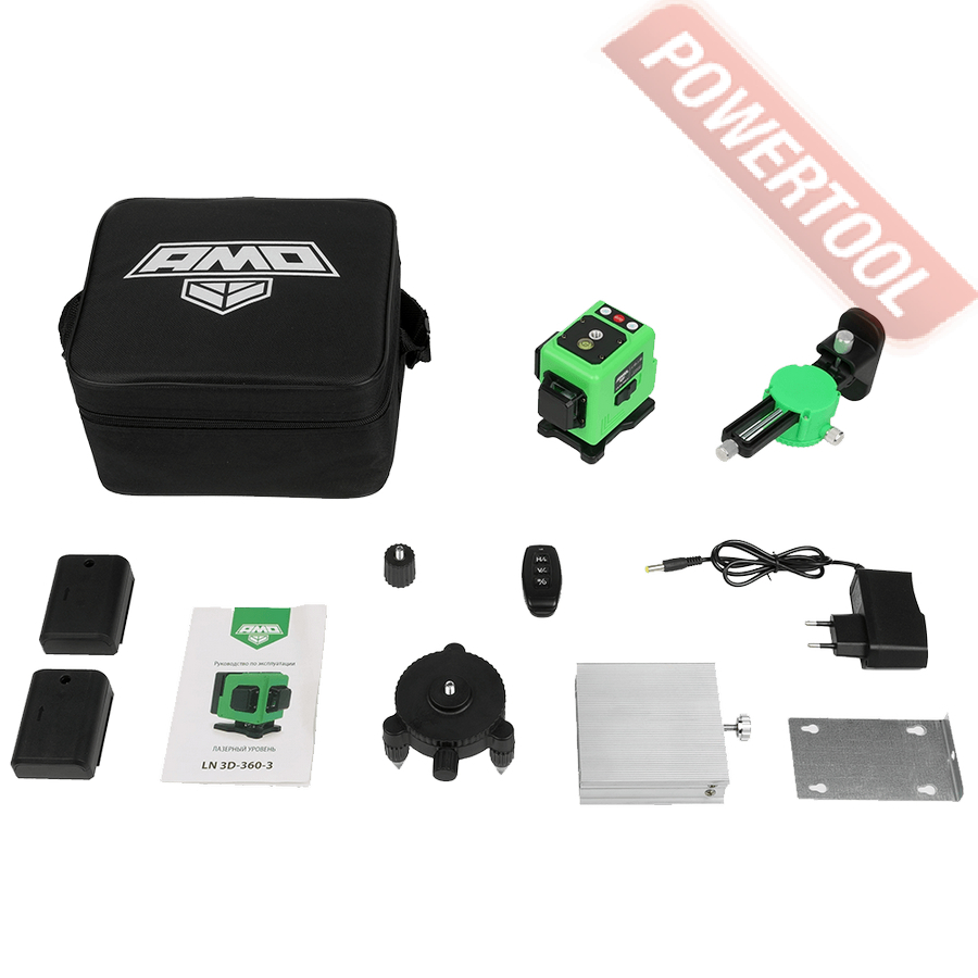 - 1. Лазерный уровень построитель плоскостей AMO LN 3D-360-3.