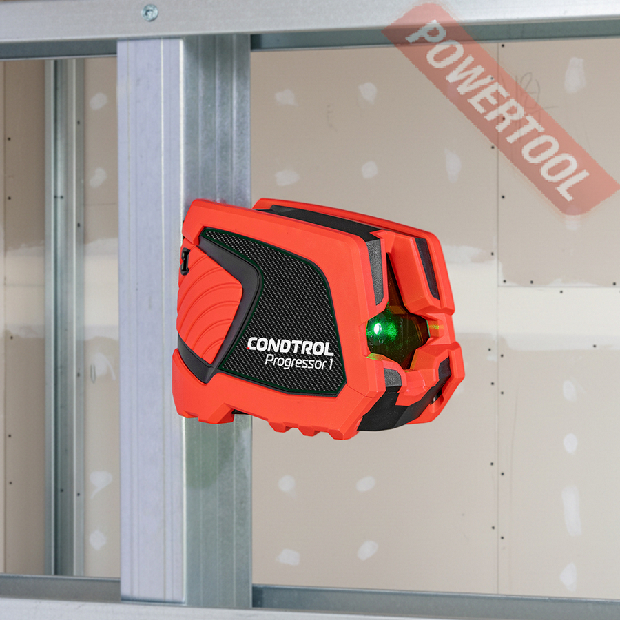 Лазерный уровень построитель плоскостей CONDTROL Progressor 1 — первый в мире проектор строительной разметки. Progressor 1 — инструмент, который экономит время и силы специалистов, делая сложную разметку максимально простой, точной и быстрой. Сетка равных ячеек проецируется на поверхность. Размер ячейки зависит от расстояния, соотношение 18:1. При большой площади потолка проекции ячеек может быть недостаточно для полного покрытия всей поверхности. В таком случае Progressor1 и проекция переносится на соседний участок, что позволяет продолжить разметку сегмент за сегментом.