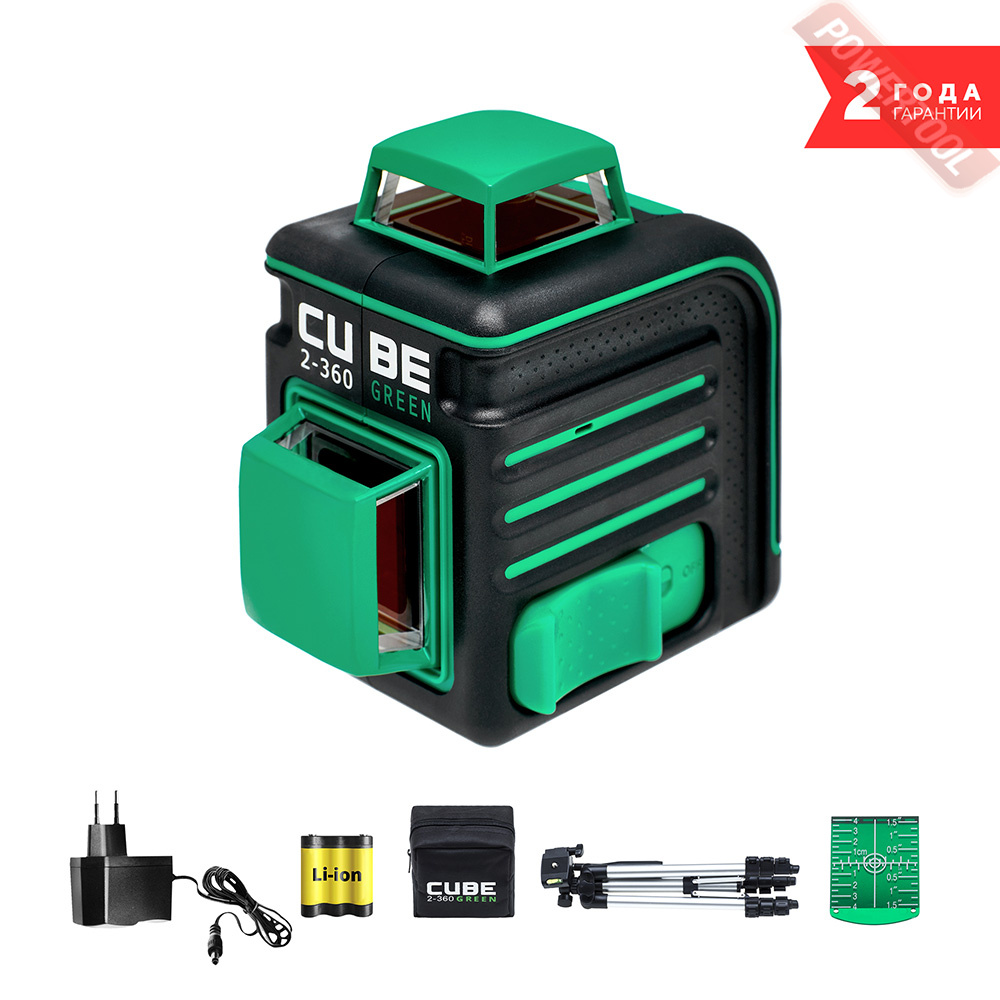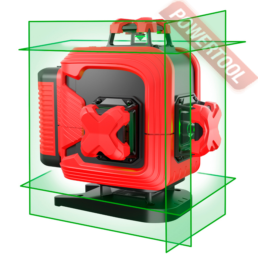- Зелёный лазерный луч ярче красного, что улучшает видимость линий при ярком освещении и на улице.