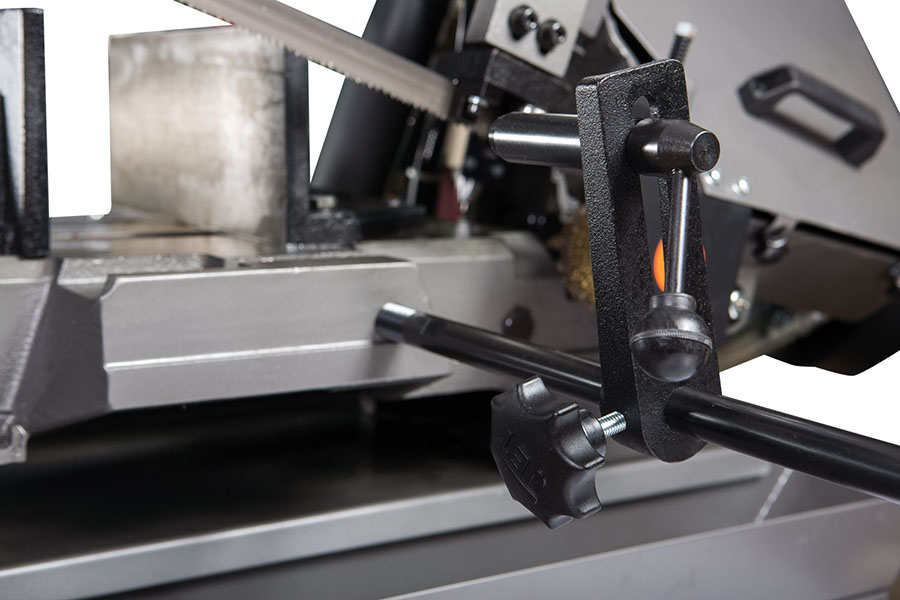 - Подставка со встроенной системой подвода СОЖ. Встроенная система подвода СОЖ в конструкции ленточной пилы по металлу охлаждает заготовку и пильное полотно для более продолжительной работы.