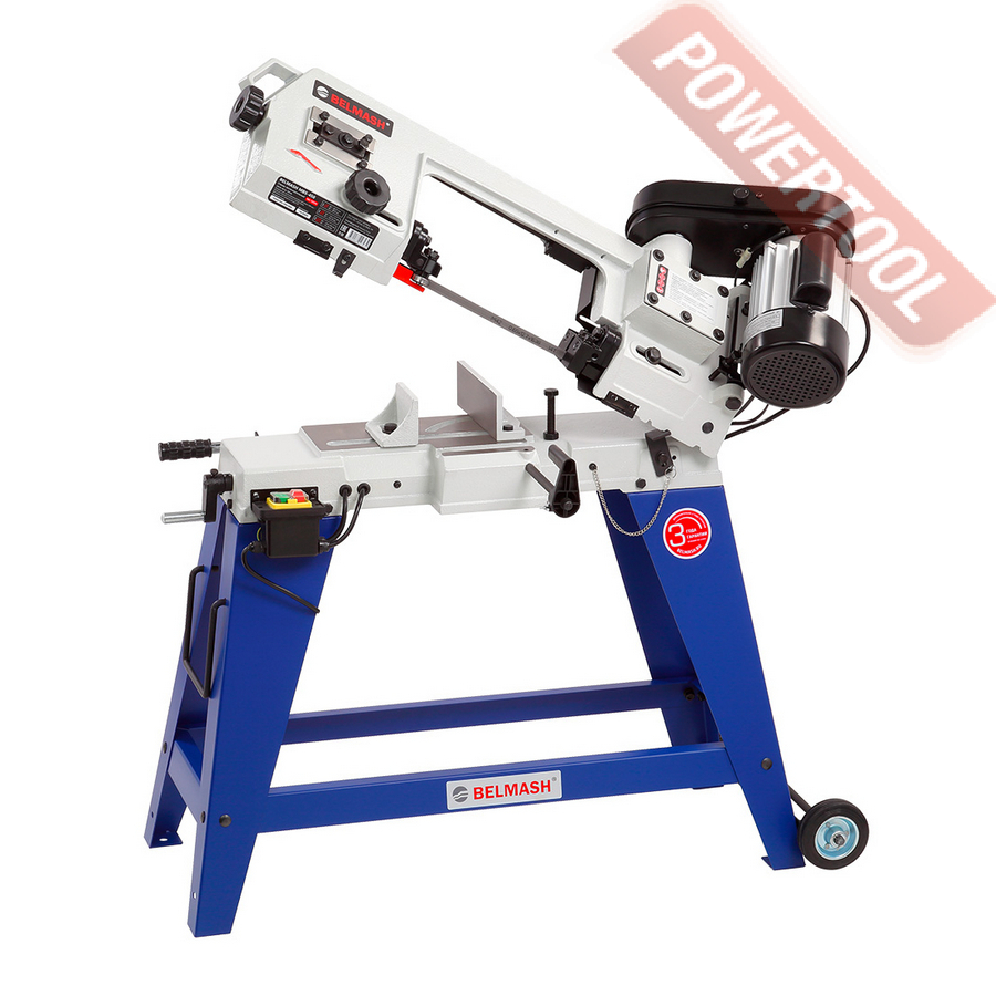 Ленточнопильный станок по металлу с ручным приводом рамы, 550 Вт, 220 В, полотно 1730х13х0,65 мм, скорость полотна 75 м/мин, сечение пропила круг/квадрат/прямоугольник при 90 градусах 130/130х130/180х100 мм, при 45 градусах 115/105х105/115х75 мм, при 60 градусах 70/60х60/70х60 мм, поворот рамы 0-60 градусов, ручной подъем и опускание рамы, мехнический рабочий цикл, размер ДхШхВ 1030х840х1540 мм, вес 70 кг.