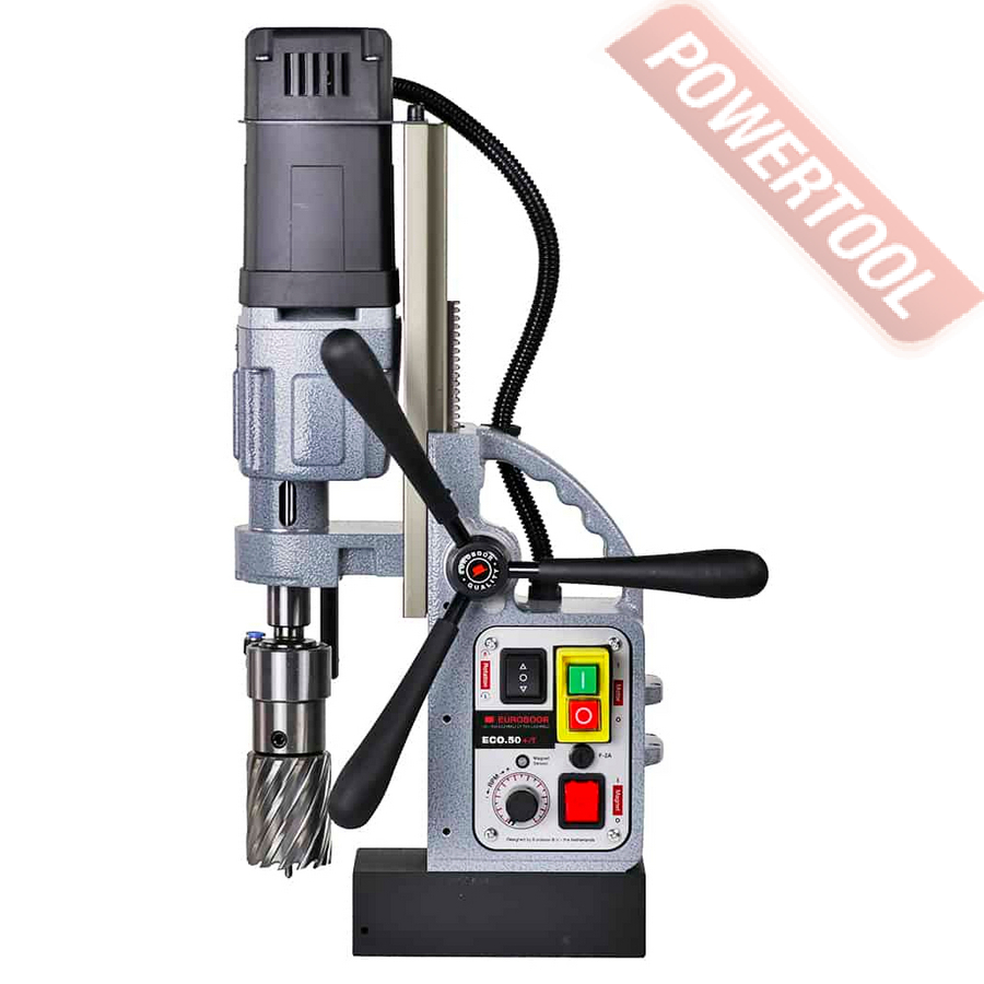 Магнитный сверлильный станок EUROBOOR ECO.50 Plus/T подходит как для сверления отверстий диаметром до 50 мм, так и для нарезания резьбы. Благодаря функции реверса и электронной регулировки скорости станок нарезает резьбу до М20. ECO.50+/T оснащен инновационной электроникой, которая обеспечивает высокий уровень безопасности, снижает риск повреждения станка, инструмента и заготовки и защищает пользователя в случае чрезмерной вибрации или внезапного смещения станка. Срок службы увеличивается, и вы избегаете высоких затрат на техническое обслуживание.