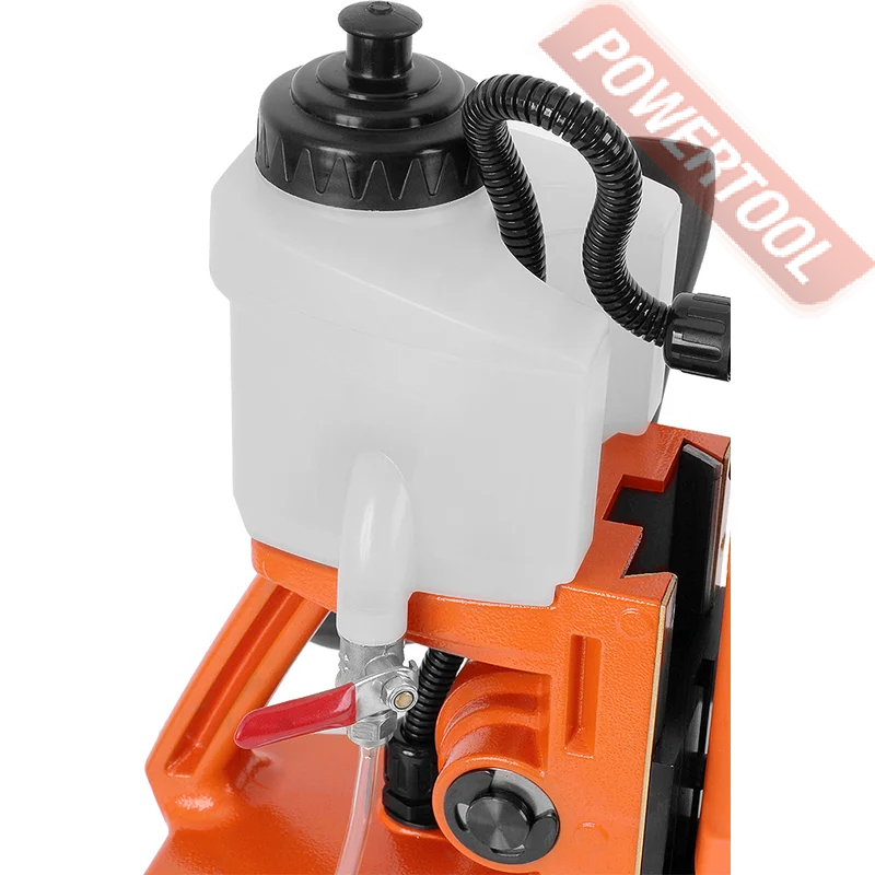 Сверлильный станок на магнитном основании MESSER MDM-42 поставляется в удобном для хранения и транспортировки пластиковом кейсе в комплекте с бачком для подачи СОЖ, съемными рычагами рукояти подачи сверла, страховочным ремнем, двумя предохранителями и шестигранным ключом. Бачок смазочно-охлаждающей жидкости снабжен клапаном для снятия разряжения.