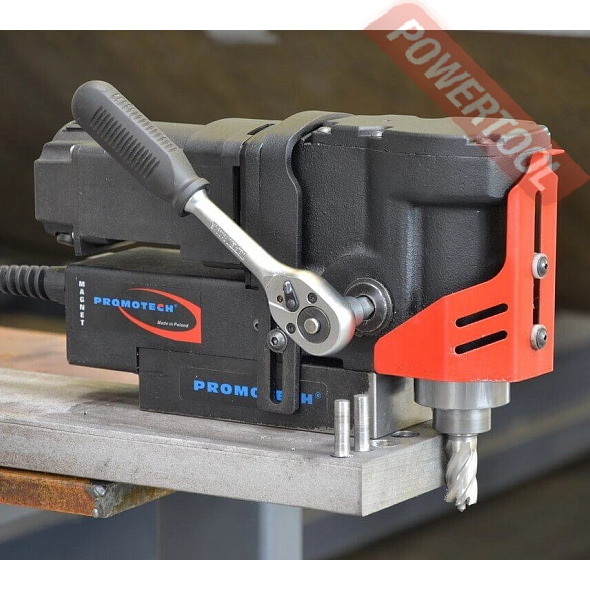 Магнитный сверлильный станок PROMOTECH PRO-36 AD который помещается даже в самых узких местах, успешно прошел испытания, и теперь Promotech готова запустить его на рынок. ПРО-36 АД является отличным решением в любых ограниченных пространствах, где из-за своих габаритов не помещаются обычные магнитные станки. Станок выполняет отверстия корончатыми сверлами диаметром до 36 мм и спиральными до 12 мм. Глубина сверления корончатыми сверлами из быстрорежущей стали составляет 20 мм, но может быть увеличена до 25 мм за счет длинной втулки. Для корончатых сверл с твердосплавными напайками максимальная глубина 30 мм.