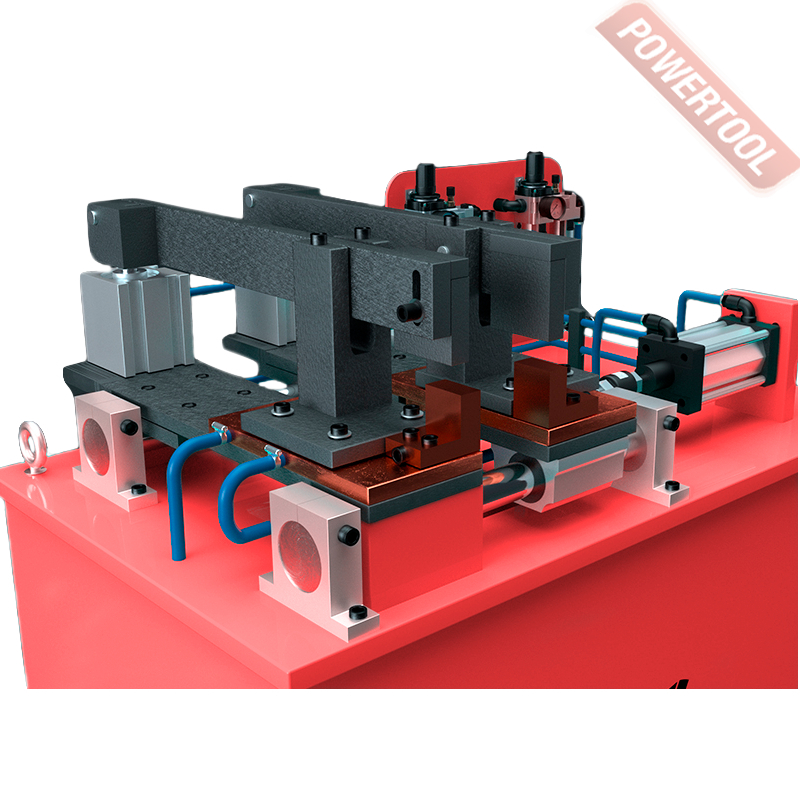 Машина функционирует на основе пневматического привода и оборудована электронным блоком с микропроцессором, который даёт возможность контролировать параметры сварки. Процесс сварки регулируется с помощью педали.