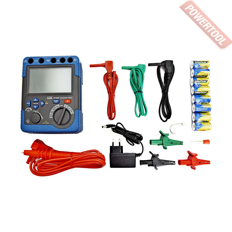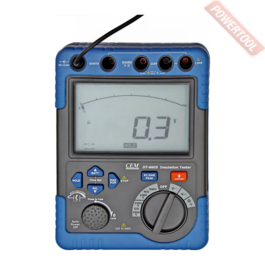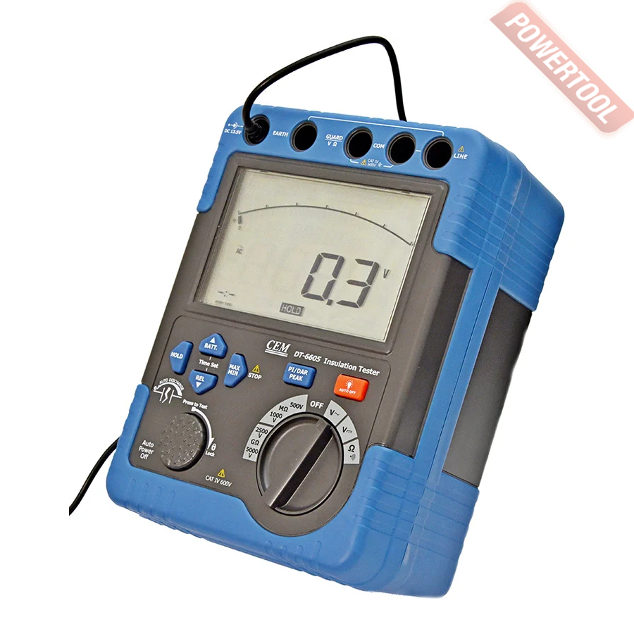 Мегаомметр цифровой CEM DT-6605 представляет собой портативный мегаомметр, позволяющий измерить напряжение переменного и постоянного тока, напряжение. Кроме того мегаомметр DT-6605 позволит вам прозванивать электроцепи для проверки их целостности и измерять сопротивление изоляции.
