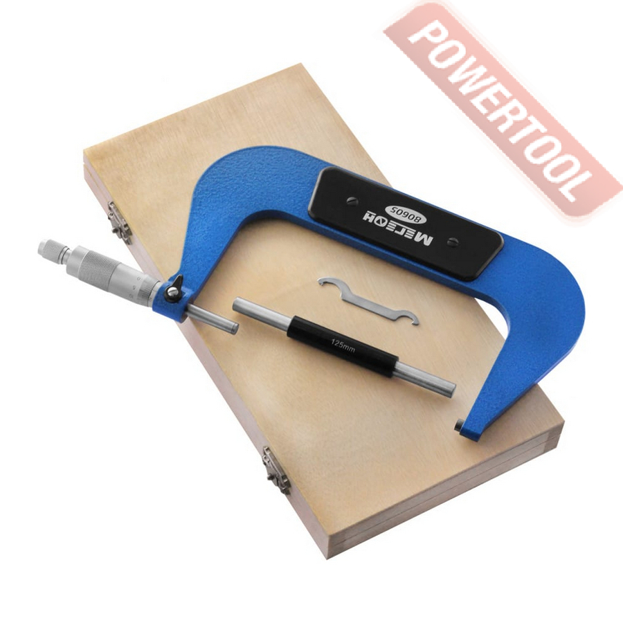 Микрометр механический МЕГЕОН 80605 позволяет проводить замеры деталей в диапазоне 125-150 мм с погрешностью не более 0,01 миллиметра. Для точной установки нуля в комплекте поставки предусмотрена установочная мера. Измерительные поверхности имеют твердосплавные напайки, что в свою очередь является признаком качества инструмента. Скоба обработана молотковой краской с высокими показателями сопротивления к сколам и царапинам. Дополнительно в местах касания пальцев установлена теплоизоляционная накладка с внешней и тыльной сторон. Для изготовления всех элементов конструкции была применена качественная инструментальная сталь. Проскальзывание пальцев исключается благодаря сетчатой накатке, нанесённой на барабан и трещотку. Предотвращение повреждений во время транспортировки и хранения обеспечивается ударопрочным футляром.