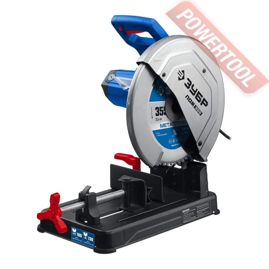 Монтажная пила для резки стали, 2300 Вт, 220 В, 3800 об/мин, диск 355х25,4 мм, углы пиления от 0 до 45 градусов, мах параметры заготовки при пилении под 90/45 градусов - квадратное сечение 120х120/102х102 мм, круглое сечение 130/115 мм, прямоугольное сечение 115х130/110х102 мм, L-образный профиль 115х137/95х95 мм, быстрозажимные тиски, вес 17 кг, абразивный отрезной диск.