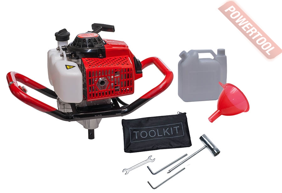 - Рабочей частью агрегата является винтообразный бур или шнек, который приводится во вращение с помощью двухтактного бензинового двигателя.