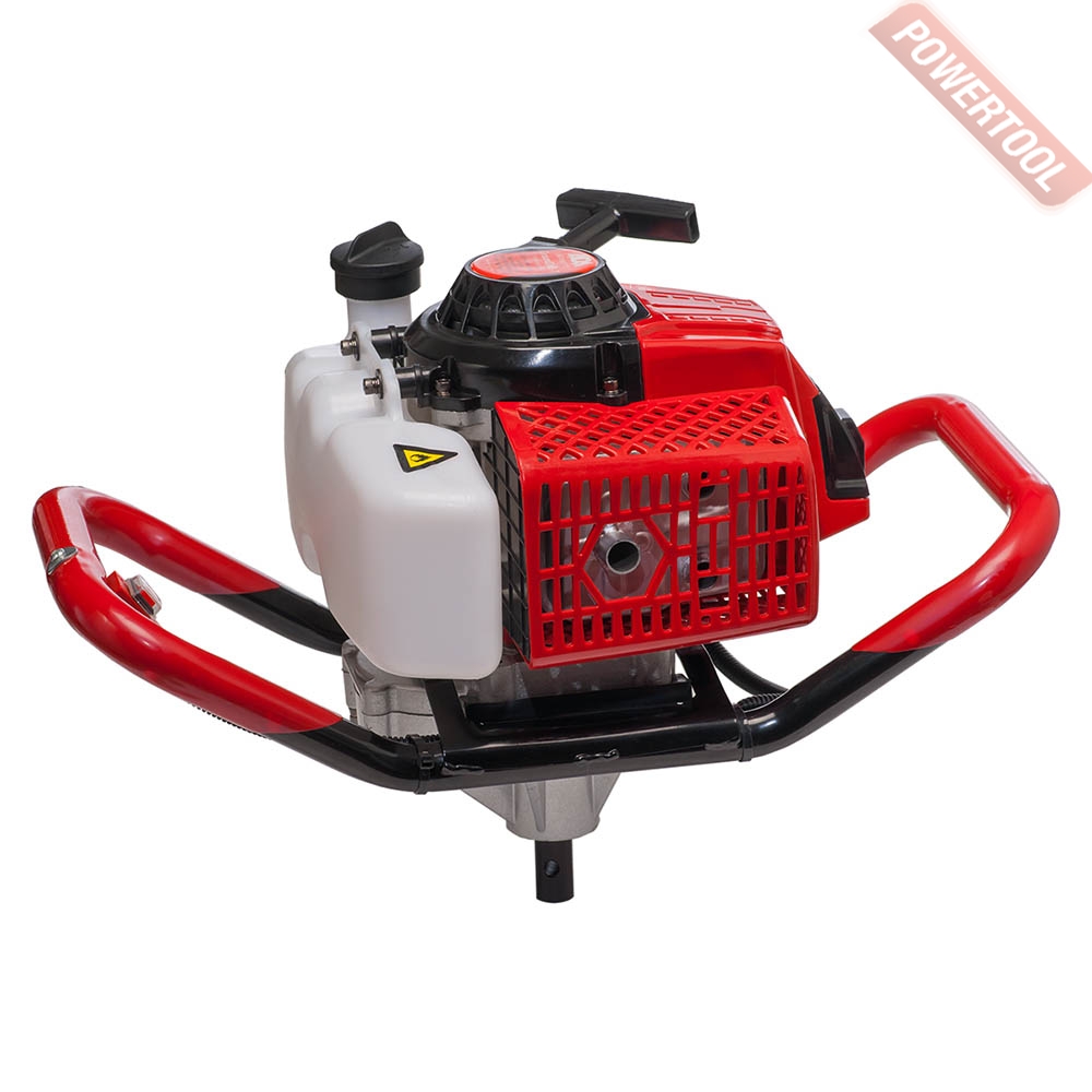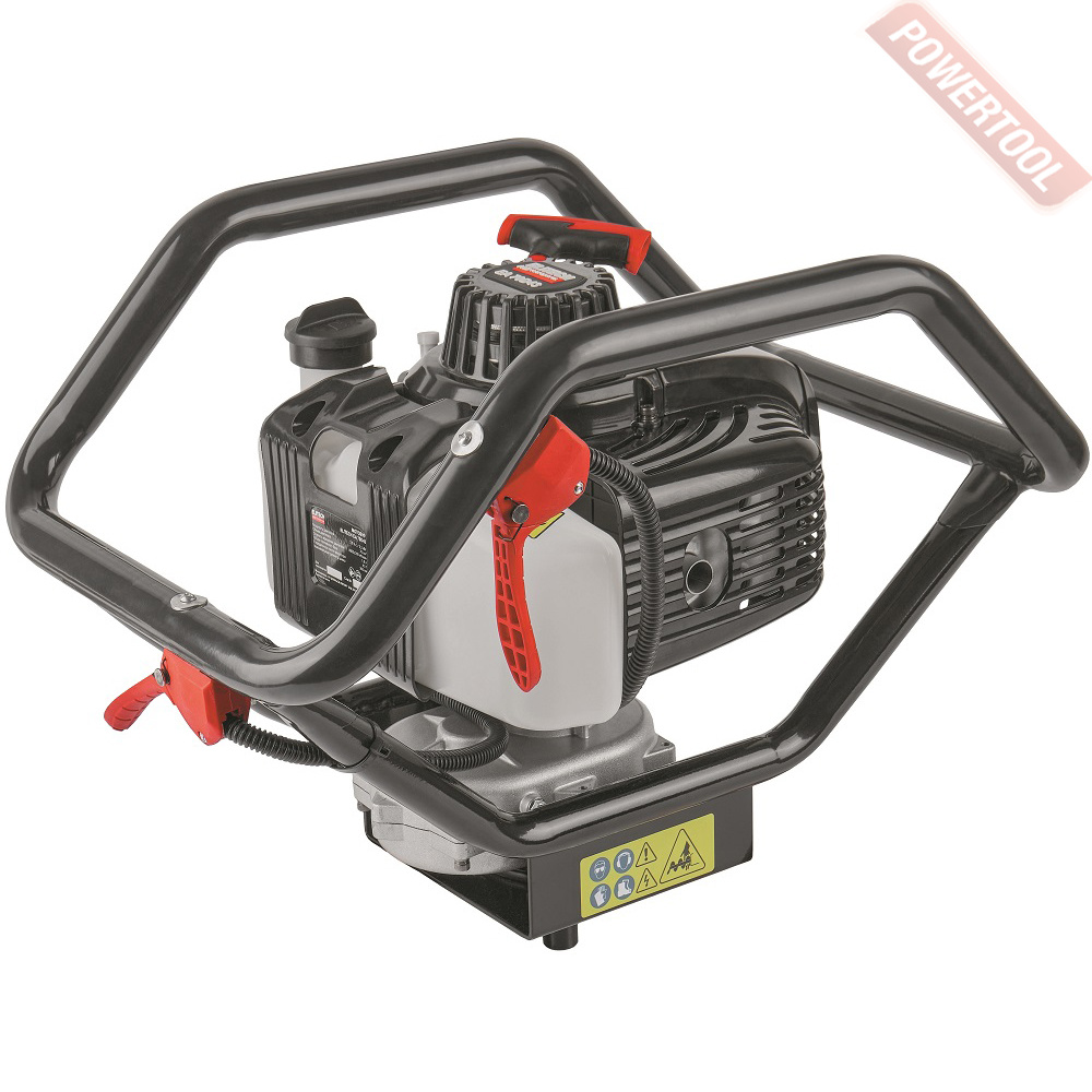 Мотобур земляной, 2-х тактный двигатель мощностью 3.26 л.с. объемом 71 куб.см, 8000 об/мин, диаметр буров до 300 мм, диаметр вала 20 мм, смесь 25к1, топливный бак 1,2 л, вес 10,3 кг, БЕЗ ШНЕКА.