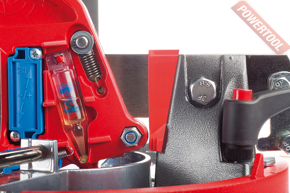 - Станок оснащён профессиональной линейкой с двумя шкалами. Вращение линейки от -45 до +45 градусов и мгновенная фиксация под заданным углом с помощью специального рычага.