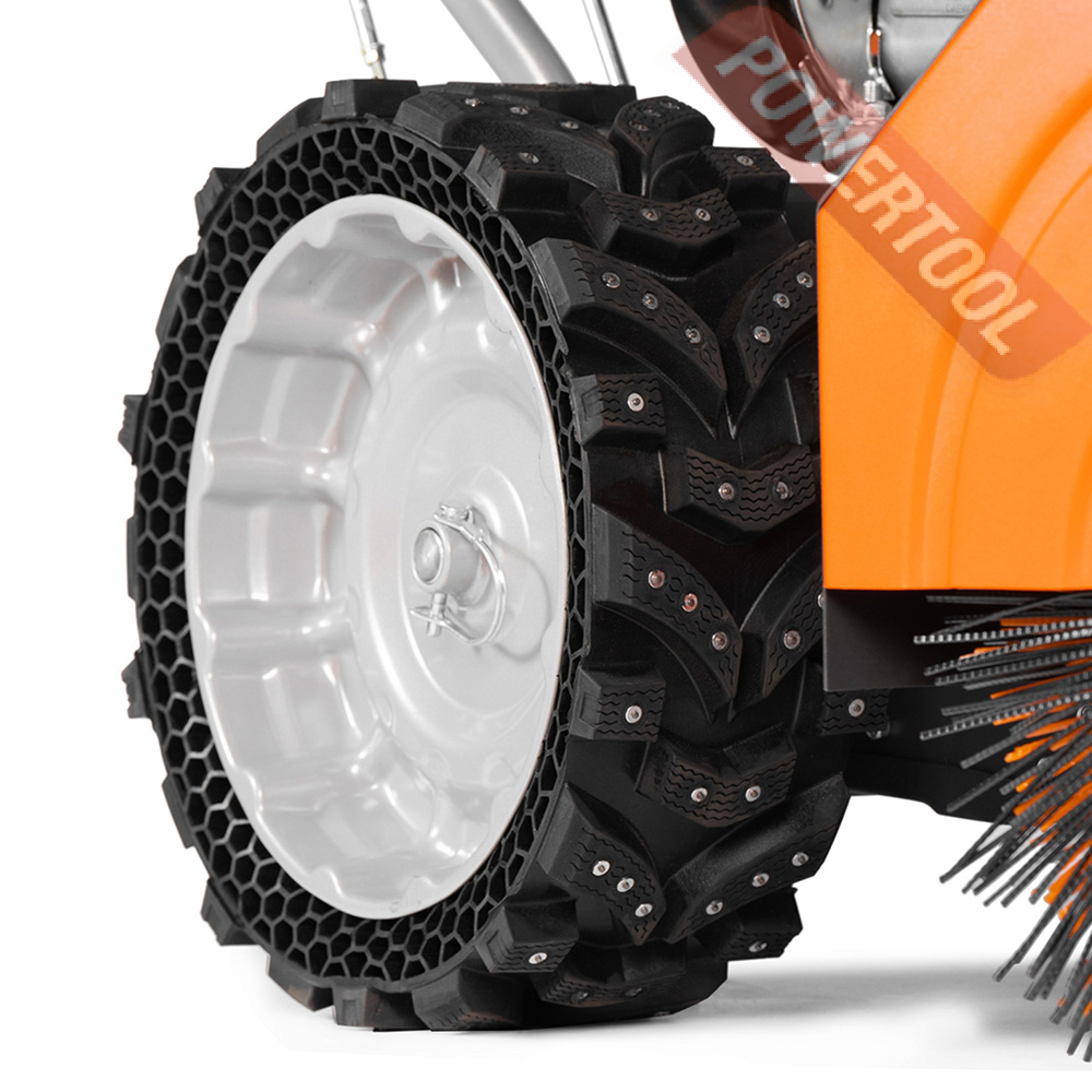 • Большие зимние безвоздушного колеса с протектором специальной формы X-TRACK обеспечивают наилучшее сцепление с зимней и обледенелой поверхностью. Увеличенный диаметр и ширина колес гарантируют высокую проходимость даже при высоком снежном покрове.
