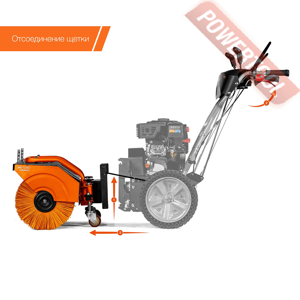 • Регулировка силы прижимания щетины к поверхности. Позволяет увеличить пятно контакта для уборки слипшейся грязи или снега.