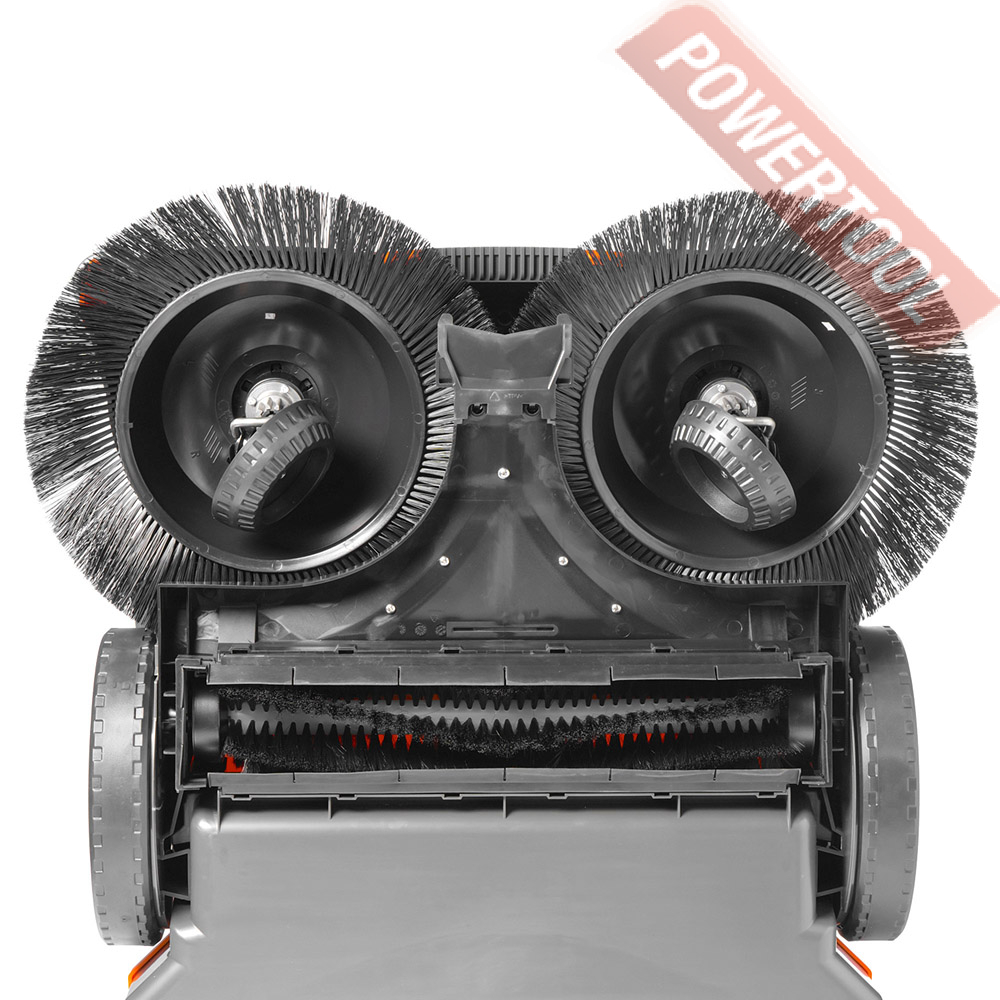- Высокая производительность уборки. Достигается благодаря широкому захвату щеток, эффективной системе сбора мусора, а также отличной маневренности и удобству управления.