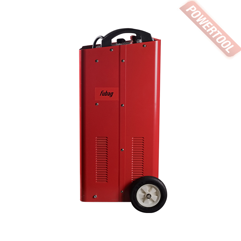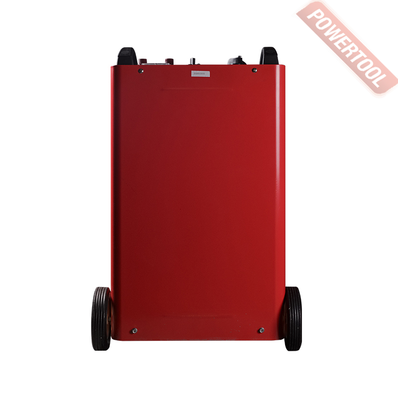 Пусковое и зарядное устройство для автомобилей с 12 / 24 В аккумулятором WET емкостью 450-1050 / 450-1300 Ач, стартовый пусковой ток 1080 / 1200 А, 6 режимов тока зарядки 45-105 / 45-130 А, трехфазное 220/380 В, таймер зарядки 0-60 мин, амперметр, защита от перегрева, замыкания и перегрузок, изменения полярности, размеры 320х400х710 мм, вес 50,3 кг, комплект электрокабелей с зажимами, транспортировочные колеса.