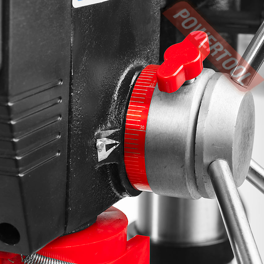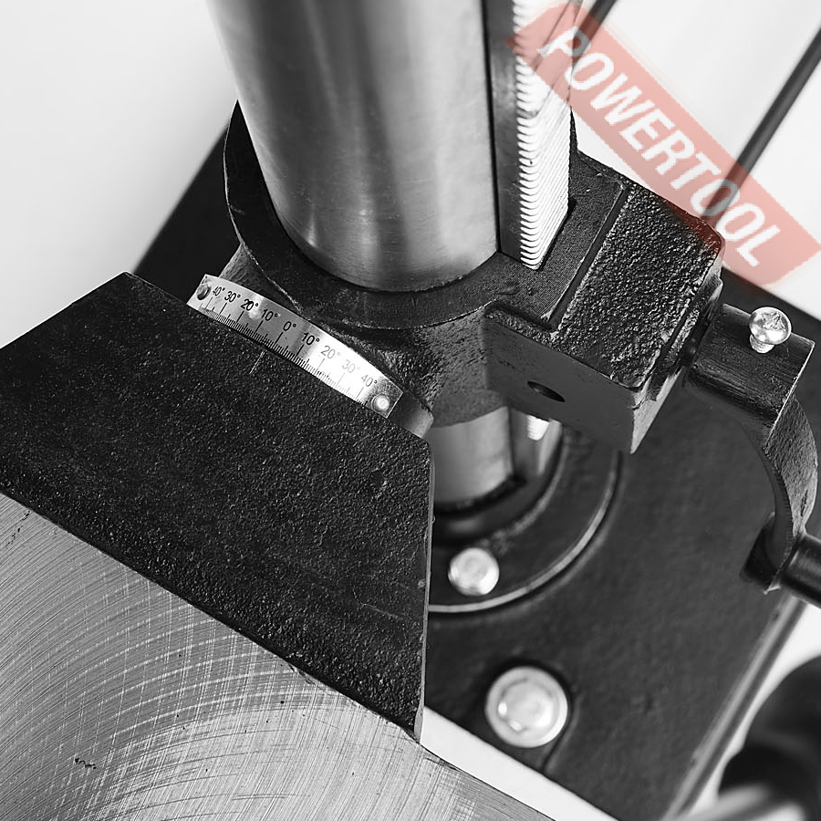 - Регулируемый наклон сверлильной головки позволяет выполнять сверление под углом.