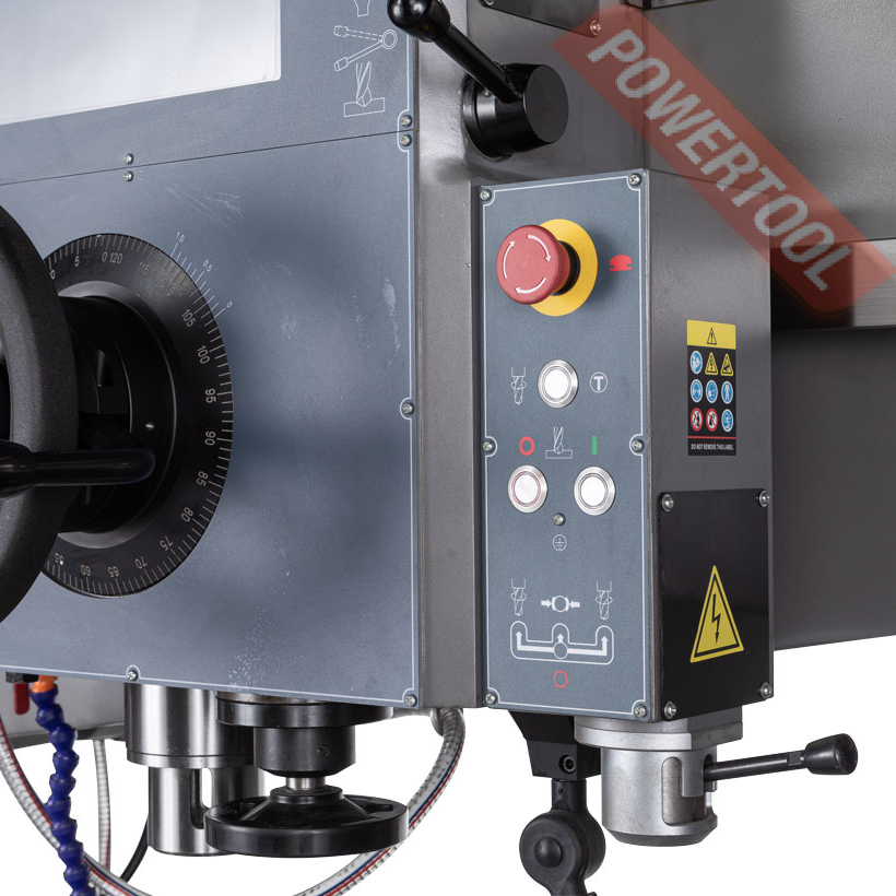 Массивная консольная конструкция позволяет обрабатывать крупногабаритные заготовки. JRD-1600DRT имеет возможность перемещения сверлильной бабки в горизонтальном направлении вдоль консоли на 1600 мм. Также консоль легко поворачивается вокруг оси колонны на 180 градусов.