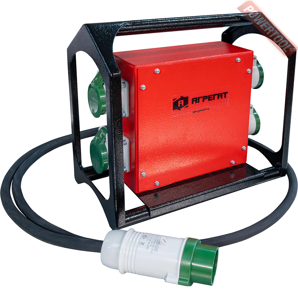 Разветвитель 42В АГРЕГАТ на четыре розетки используется для подключения глубинных вибраторов, и прочего высокочастотного электрооборудования, к преобразователю частоты. Суммарная возможная токовая нагрузка определяется мощностью преобразователя частоты, но не должна быть более 32 А.