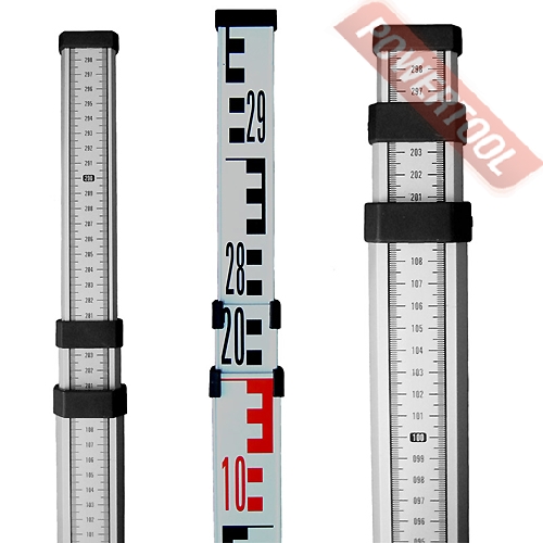 Рейка измерительная электронная телескопическая, материал алюминий, 6 секций, ЖК-дисплей, max длина 5 м, min длина 1,04 м, точность 1 мм, разрешение 1 мм, питание от 4 батареек 1,5В тип AA, ресурс батарей до 200 ч, автоотключение после 3 минут простоя, функции Zero и Hold.