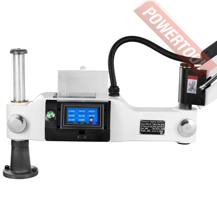 Резьбонарезной манипулятор, 1200 Вт, 220 В, max нарезаемая резьба M30, частота вращения шпинделя 0-200 об/мин, бесступенчатая регулировка оборотов, индикация числа оборотов, режимы ручной/авто/нарезка глубокой резьбы, рабочий радиус поворота рычага 1200 мм, вес 50 кг, в комплекте набор резьбонарезных головок GTM-24 DIN 371 M5-М6/М8/М10, DIN 376 М12/М14/М16/M18/M20/M22-M24/M27/M30 с ключом, опора, крепежные принадлежности.