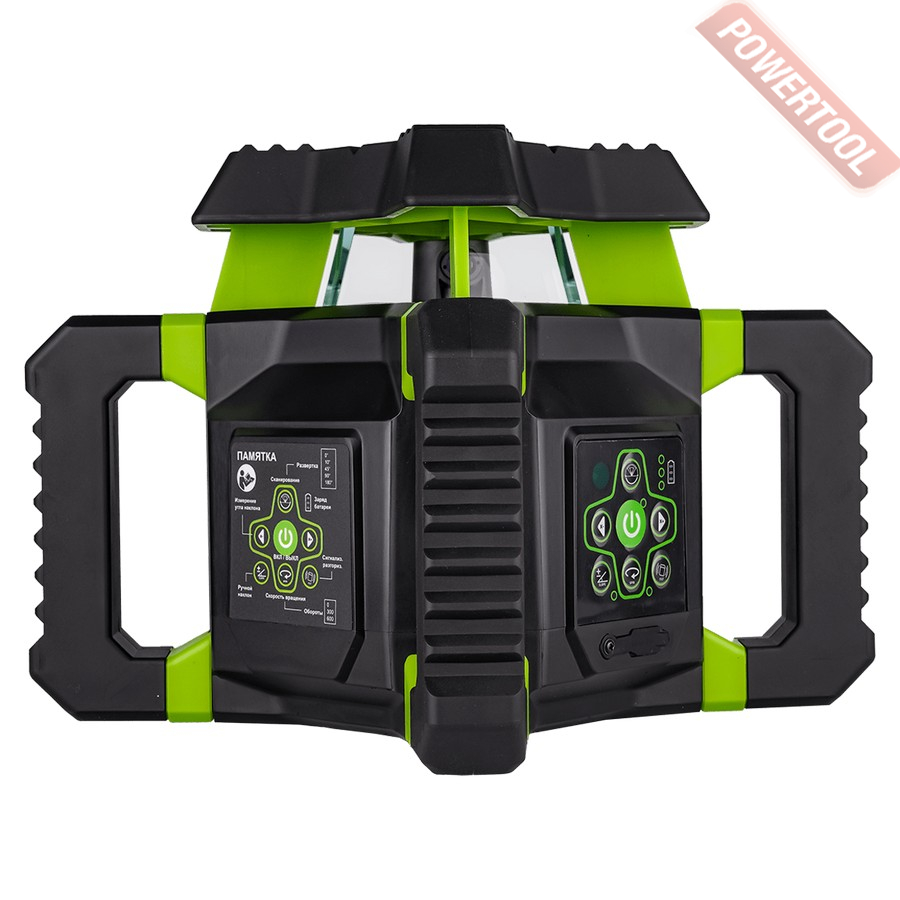 Для недопущения повреждения лазерной головки в процессе эксплуатации ротационный нивелир RGK SP-312G снабжен верхней крышкой, усиленной ребрами жесткости. 4 крупноразмерные ручки, позволяющие удобно переносить и устанавливать прибор, выполняют роль дополнительной защиты от механических воздействий. Благодаря параллельной конструкции они могут применяться как опора при использовании изделия для проецирования вертикальной плоскости, с установкой на грунт или любую поверхность. Также предусмотрена возможность крепления изделия на штативе, для чего на корпусе имеются два перпендикулярных винтовых крепления.