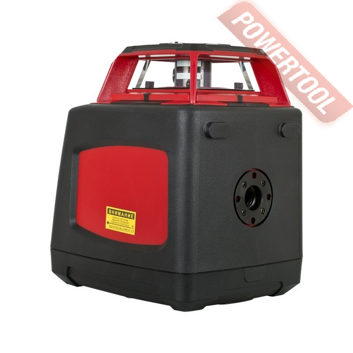 - Корпус покрыт прорезиненным пластиком для удобного захвата рукой и смягчения случайных ударов, а головка лазера защищена от ударов и попадания мусора. Масса прибора с аккумулятором — 2 кг, удобная ручка облегчает переноску и установку.