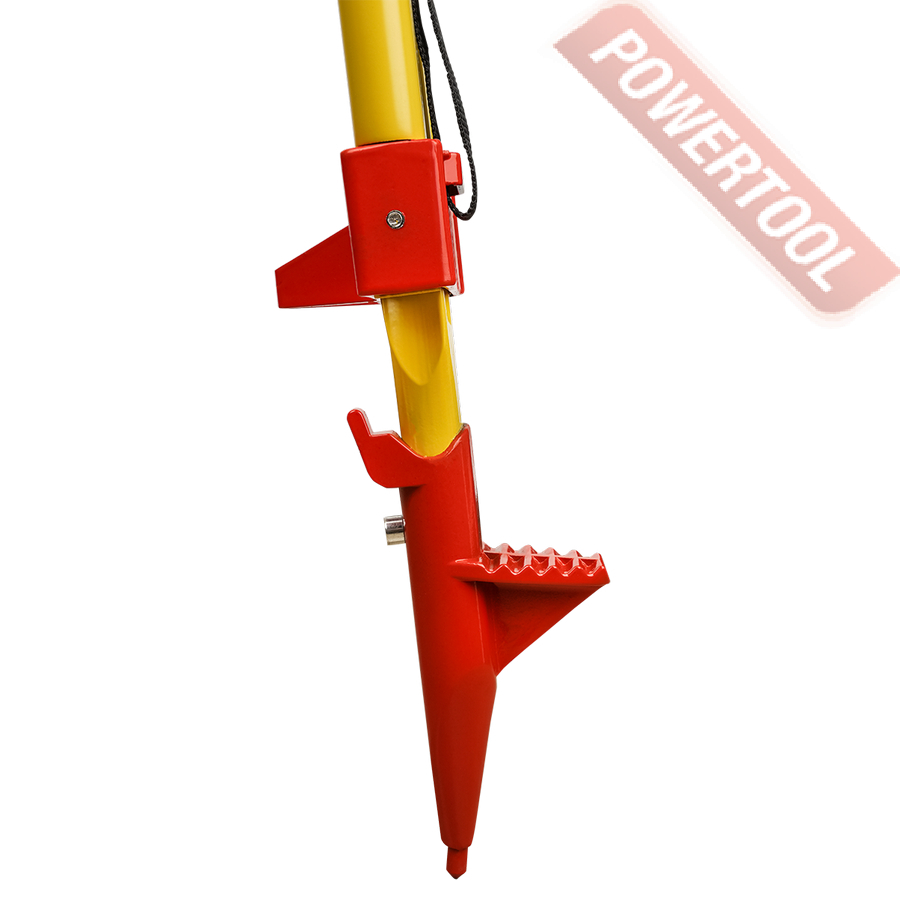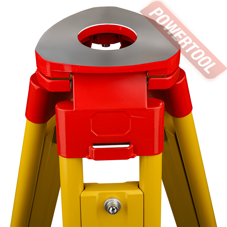 Для установки геодезических приборов деревянный штатив снабжен металлической головкой из немагнитного материала, с верхней фрезерованной поверхностью увеличенного размера и становым винтом с резьбой 5/8 дюйма. Несущие конструкционные элементы раздвижных ножек выполнены из цельной древесины и защищены от негативного воздействия влаги лакокрасочным покрытием желтого цвета. Их фиксация в рабочем положении производится надежными винтовыми зажимами. Металлические наконечники ножек выполнены с упорами для вдавливания в грунт, которые для улучшения сцепления с обувью снабжены рифлением.